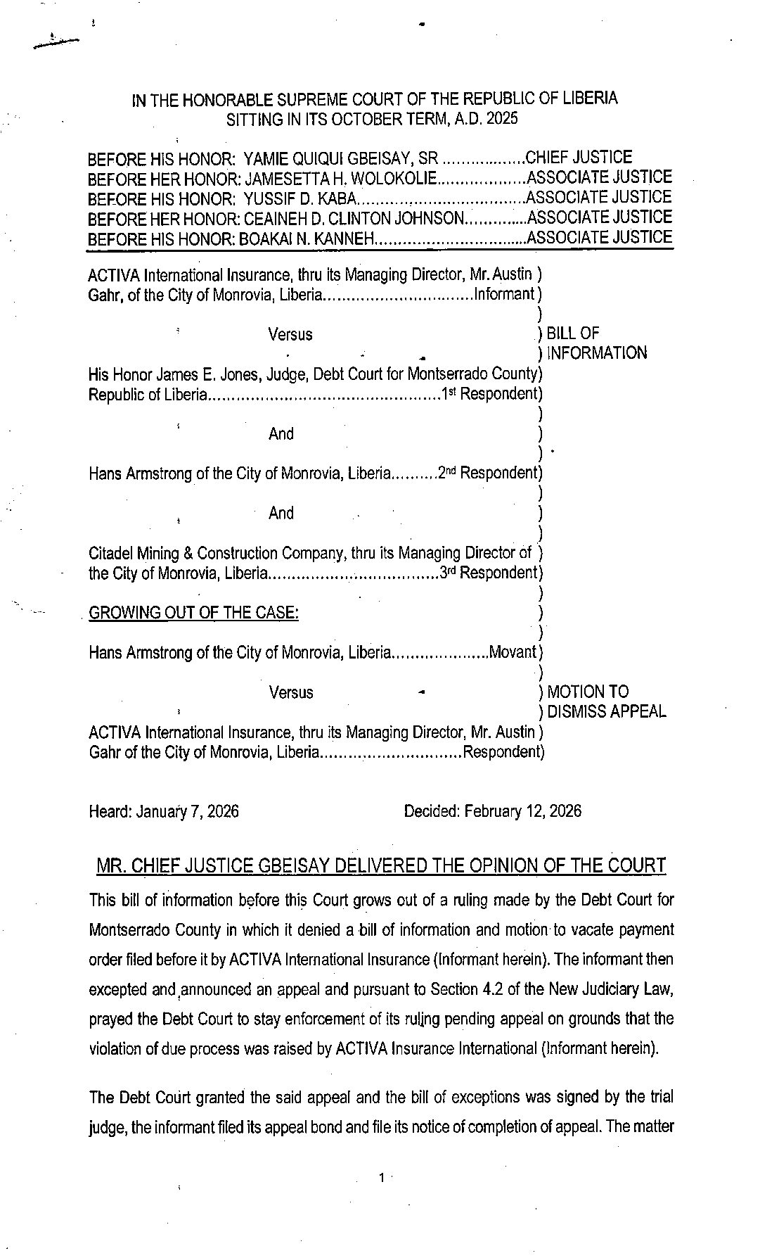 ACTIVA International Insurance v His Honor James E. Jones et al (2026)