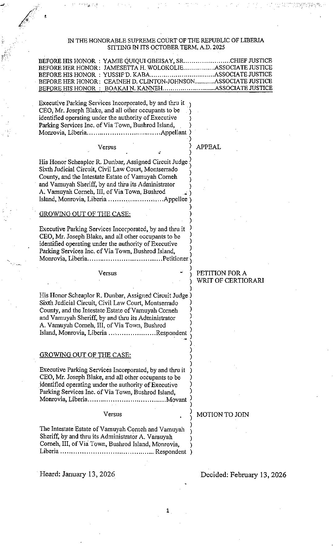 Executive Parking Services Incorporated v His Honor Scheaplor R. Dunbar et al (2026)This content is restricted to Logged in users only. Please Log In